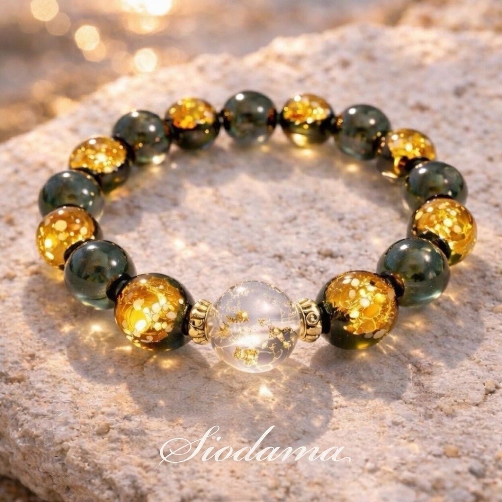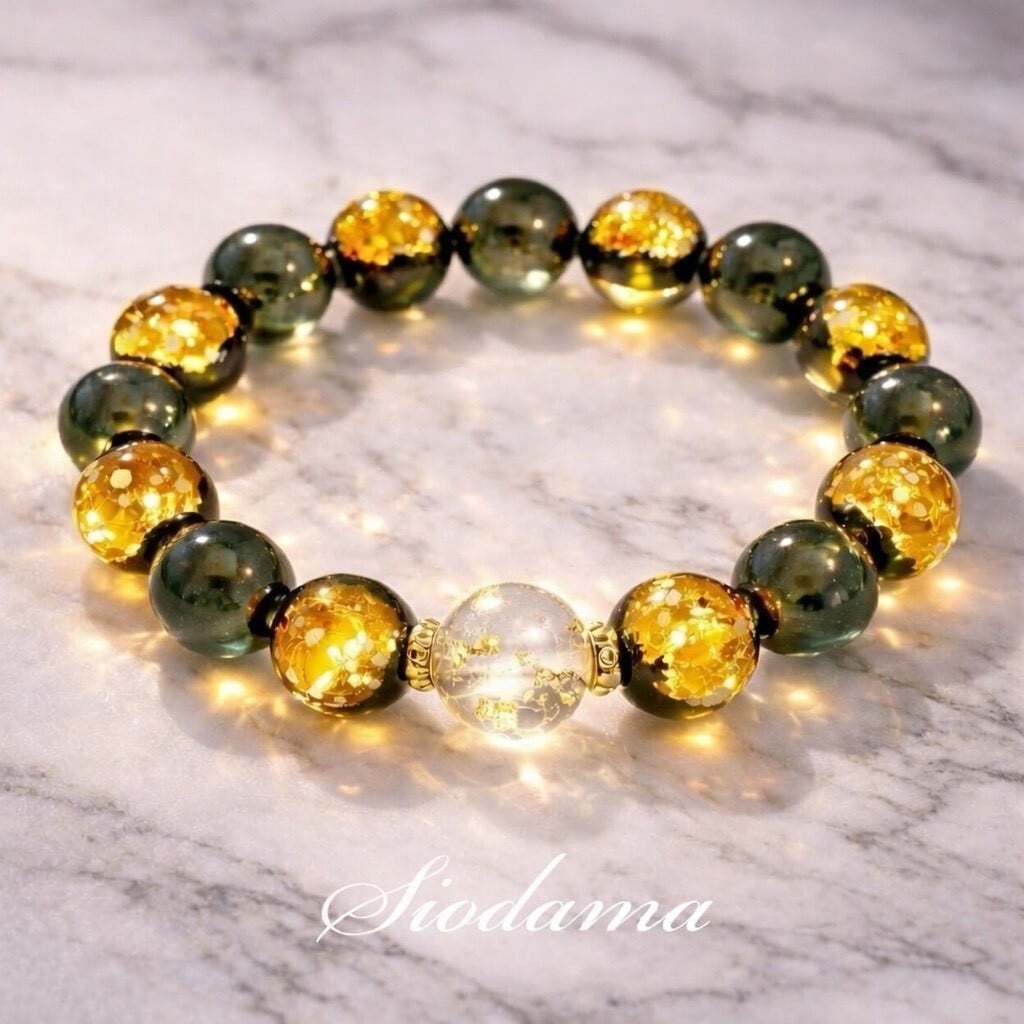 【金運上昇】琉球黄金ホタルガラス×琉球塩珠ブレスレット