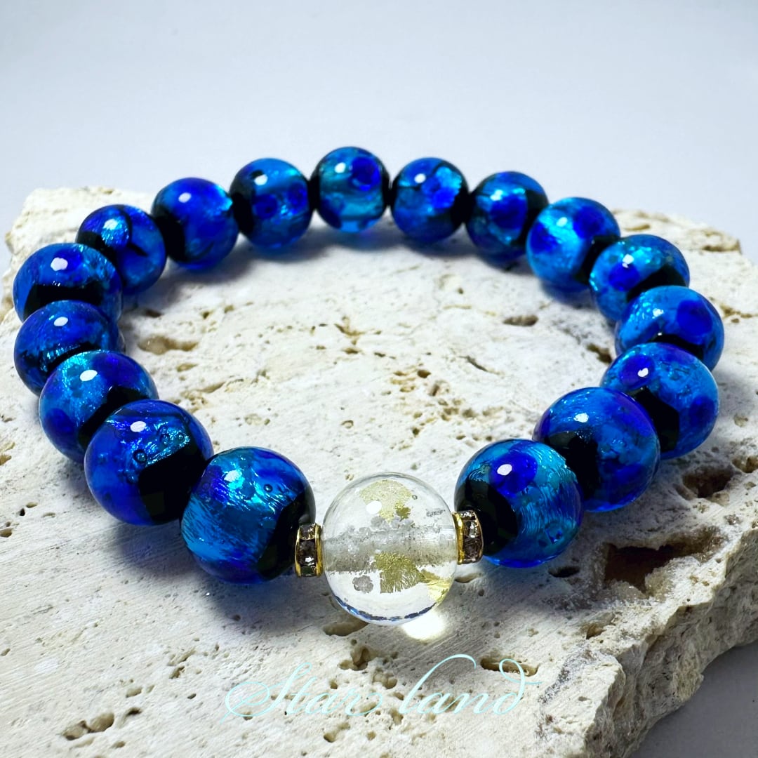 高級感溢れる24金箔入り塩珠&ホタルガラスブレスレット。