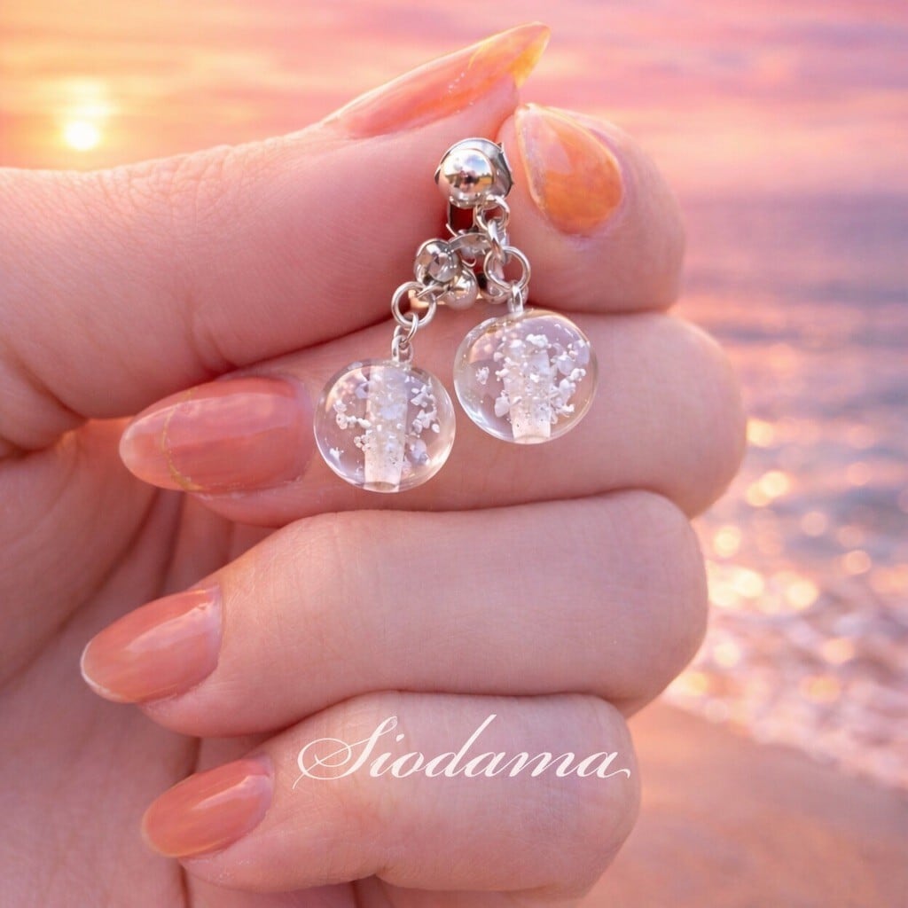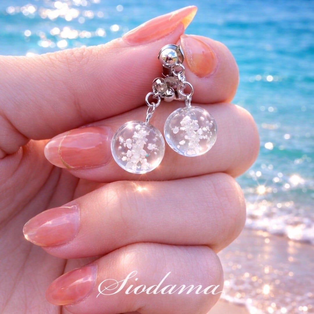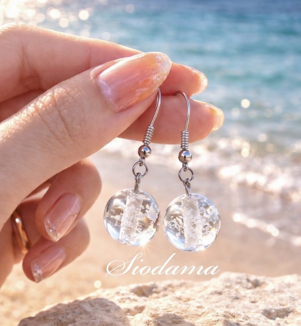 沖縄のお塩を閉じ込めた塩珠をあしらったシンプルなピアス。