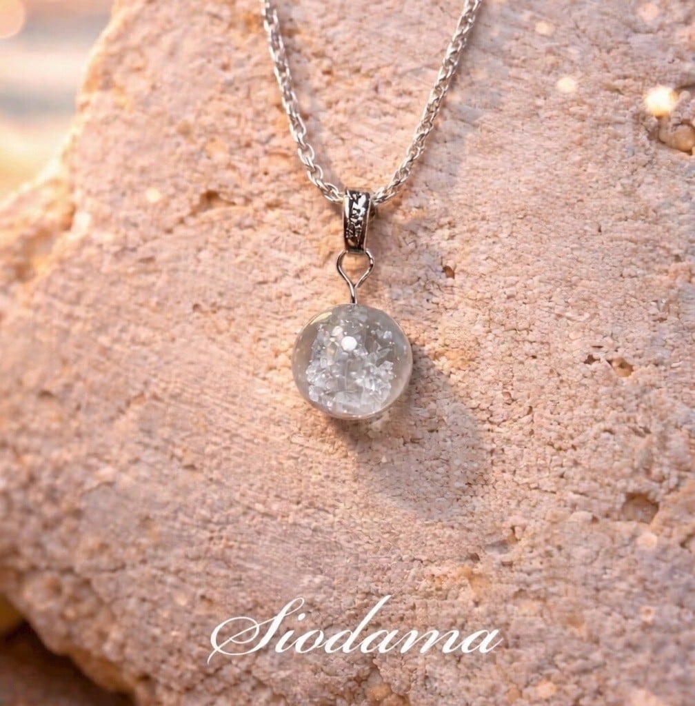 沖縄の塩を閉じ込めた塩珠を主役にしたネックレス。