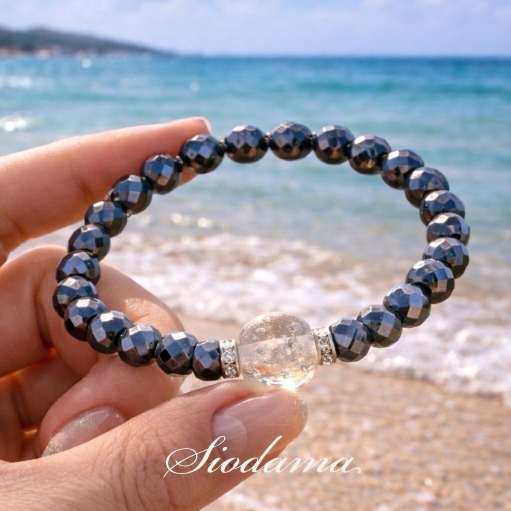 天然の塩を閉じ込めた塩珠を組み合わせたブレスレット。